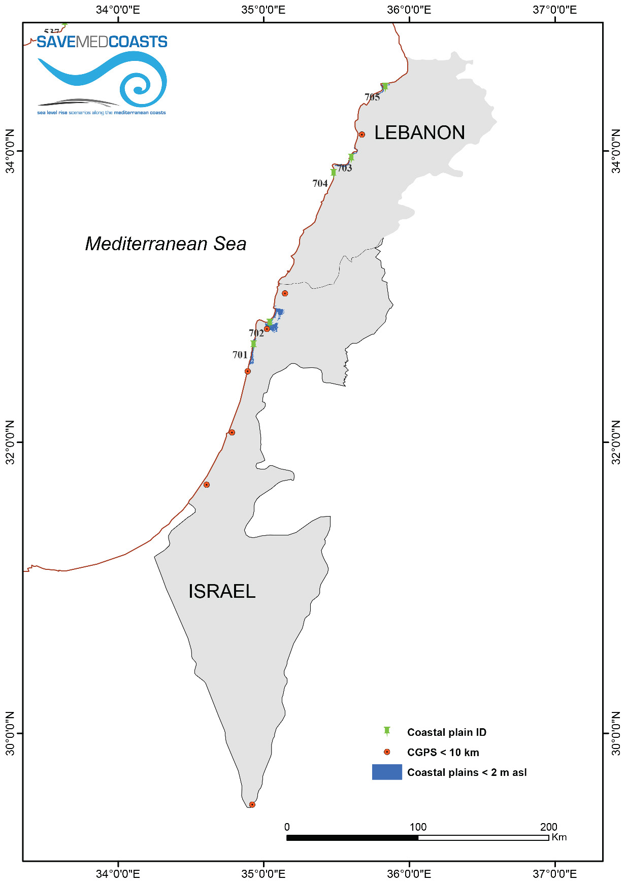 - Israel and Lebanon (ID 700): map of coastal plains prone to marine flooding